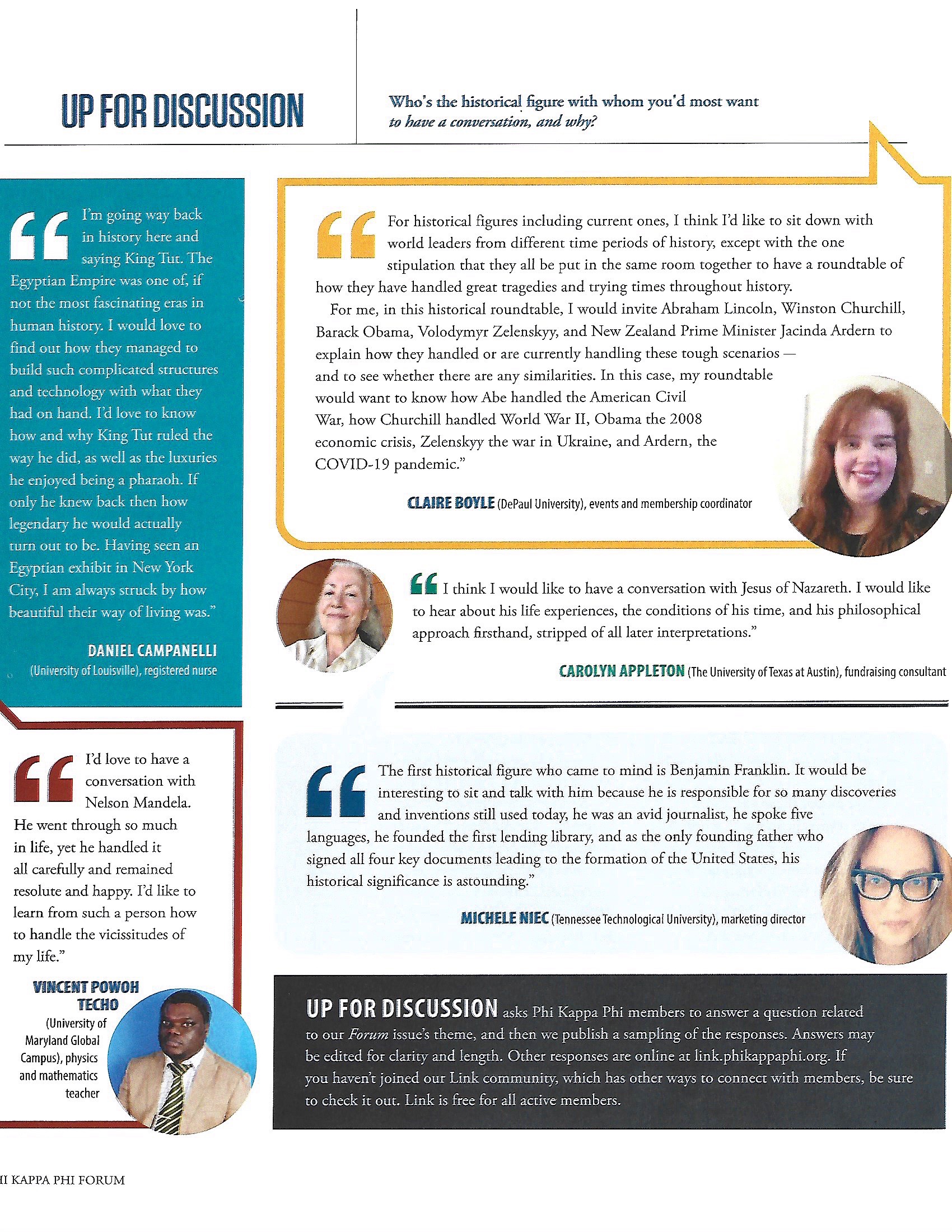- During 2022 and 2023, I was pleased to be quoted in the Phi Kappa Phi Forum (journal). I have been a member since 1985, when I was elected during graduate school at The University of Texas at Austin.